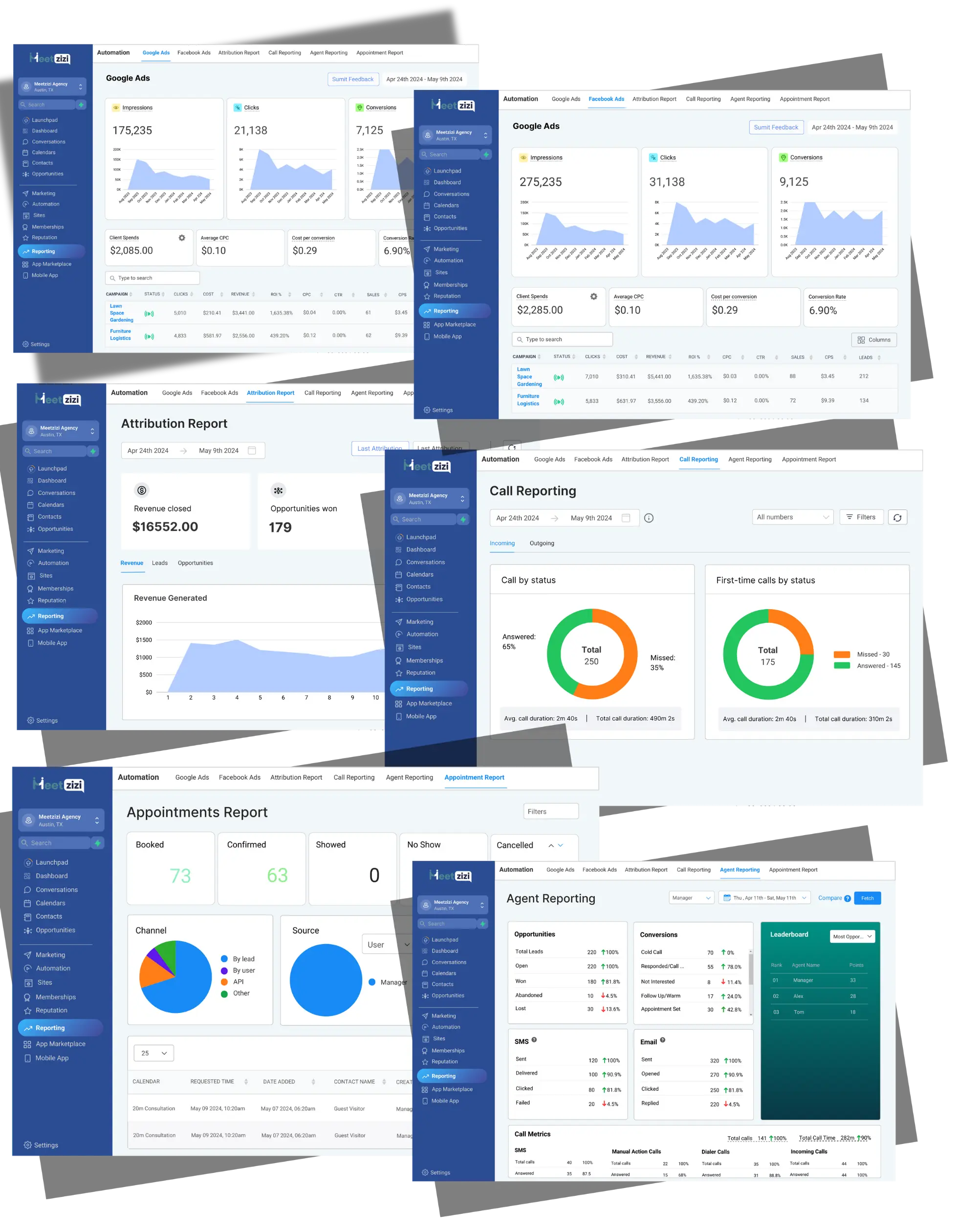 Highlevel365 provides analytics that help you understand your sales team’s performance at a glance. Easily track metrics like call reports, agent performance, and appointment scheduling to enhance team efficiency.